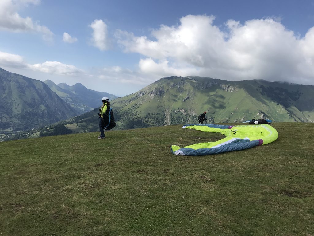 Als wir wieder auf einer breiten Straße waren haben wir zwei Gleitschirme in der Luft gesehen, also nichts wie hin! So haben wir das Fluggebiet Accous entdeckt.