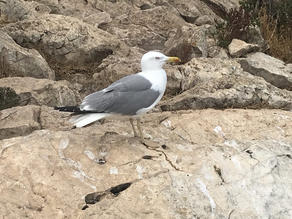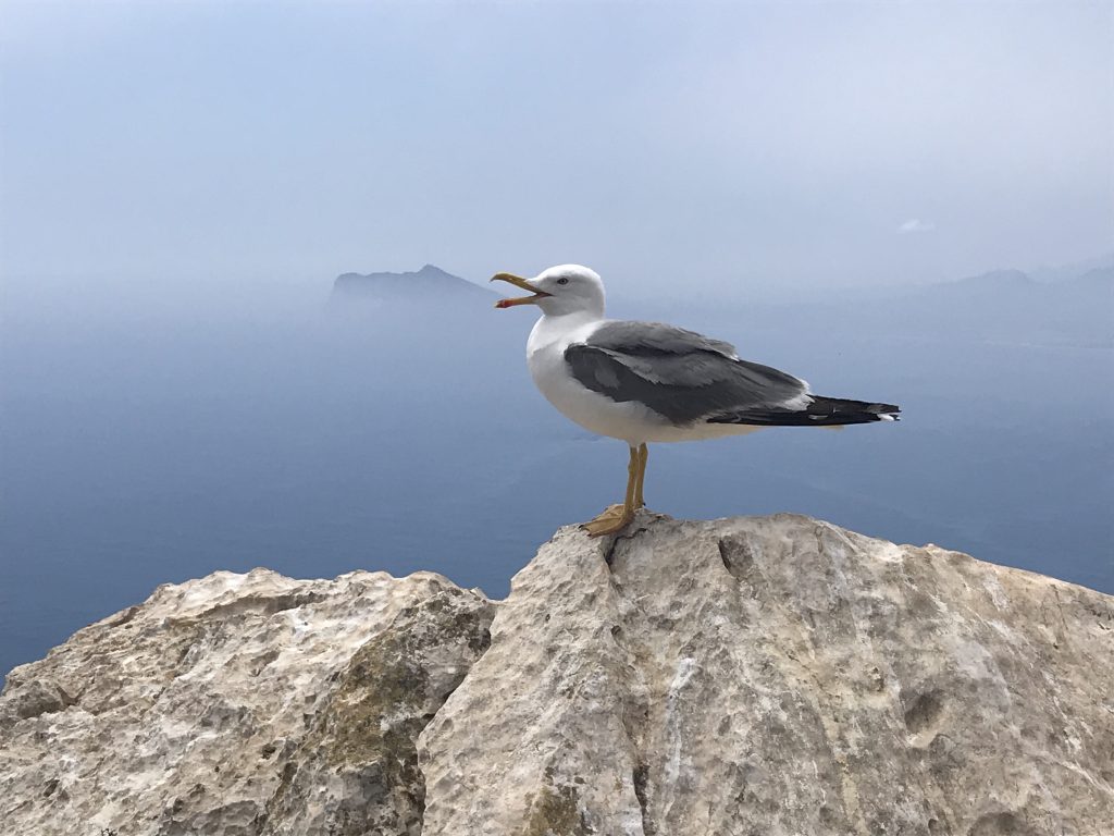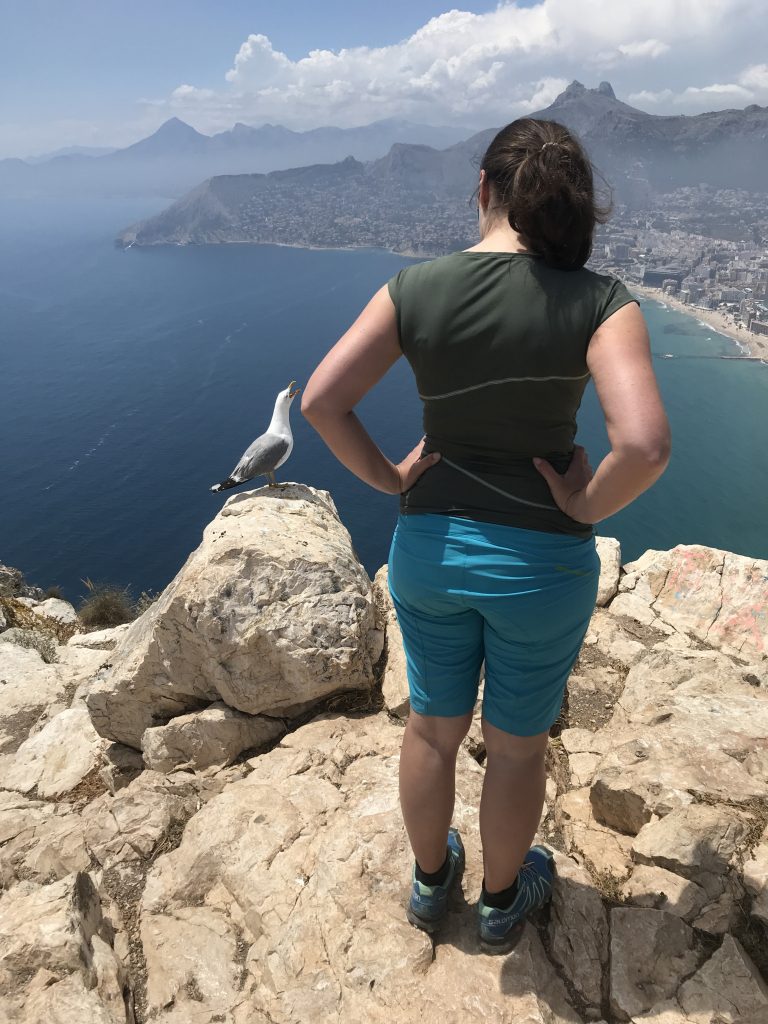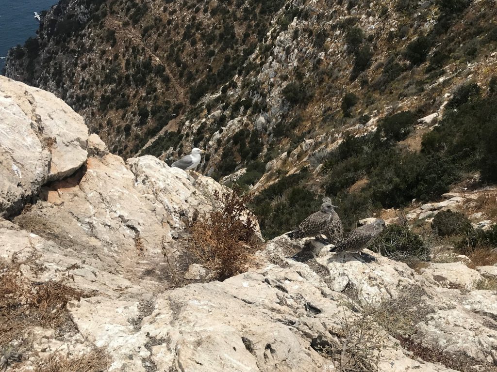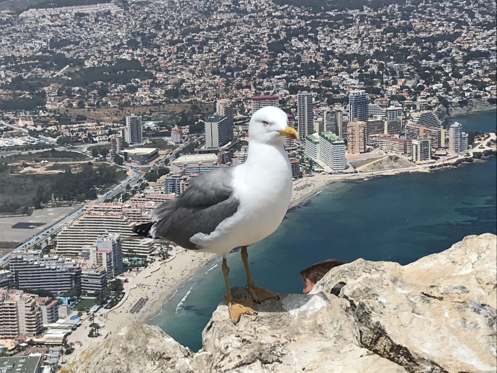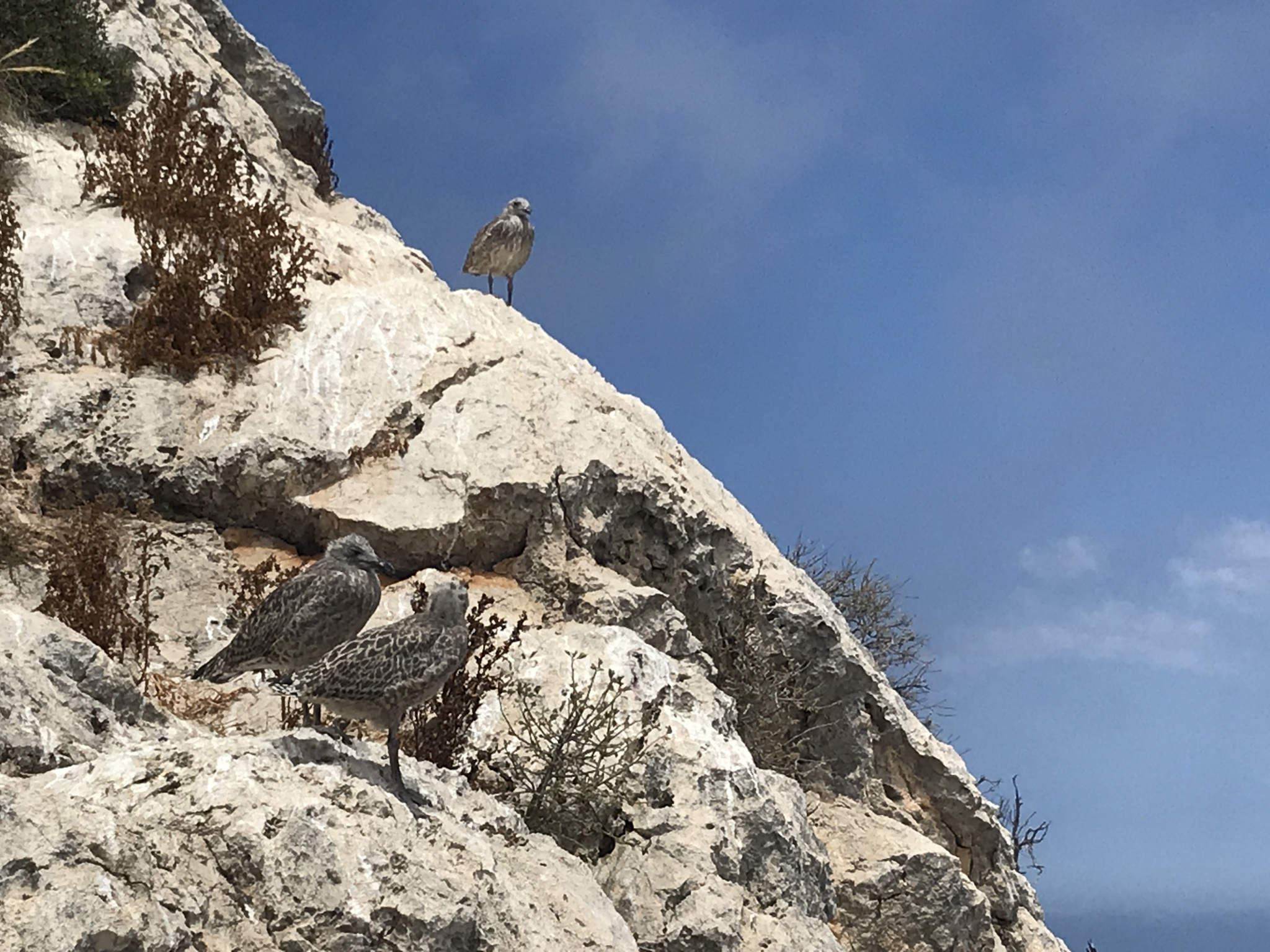 Die Wanderung auf den Calpe war dann noch unbeschreiblich schön! (Nachdem wieder einmal Sonntags der ganze Parkplatz völlig überfüllt gewesen war, war nun am Montag fast nichts mehr los). Und unglaublich: die Möven mit ihren Küken auf dieser Seite waren vollkommen entspannt! Die sind nicht mal aufgestanden, wenn man gefilmt hat oder (aus Versehen) einen halben Meter vor ihren gut getarnten Küken gestanden ist!! Wir haben noch nie Mövenküken gesehen, die sind schon wirklich niedlich! Und die Großen gute Eltern: einer hat immer auf die Kleinen aufgepasst…