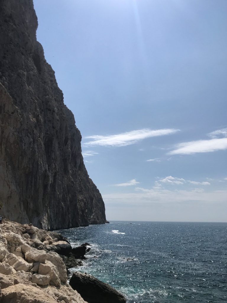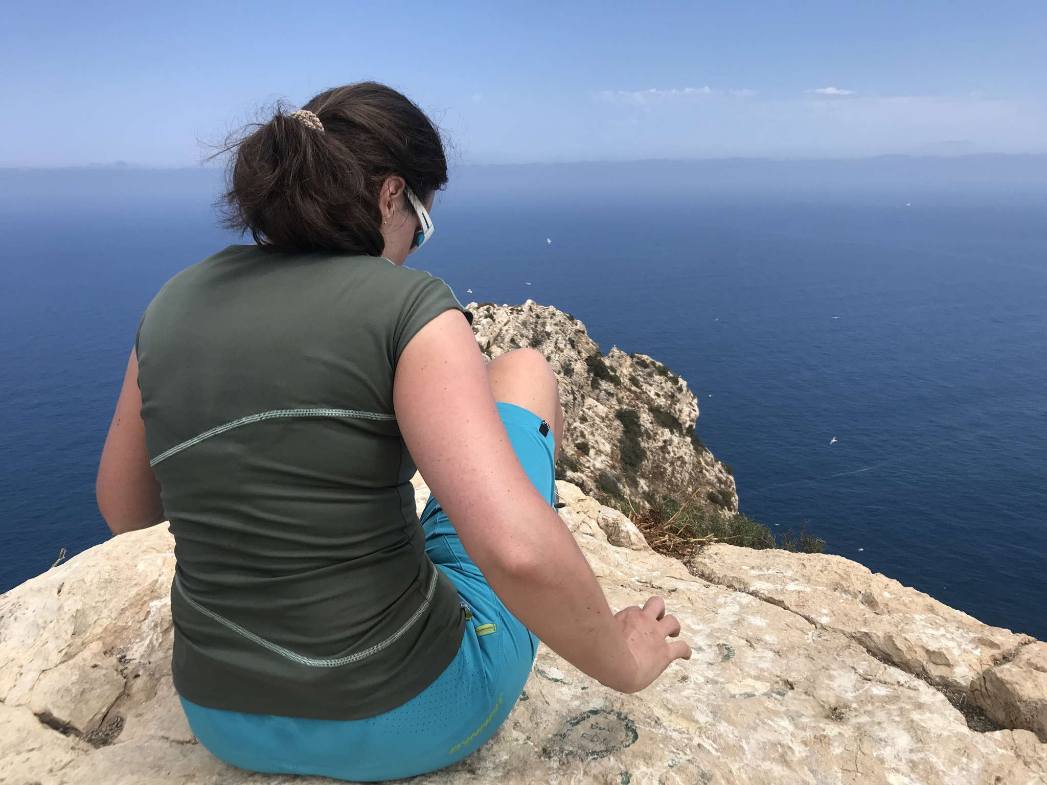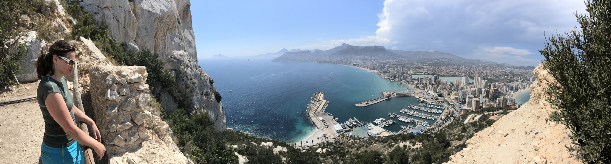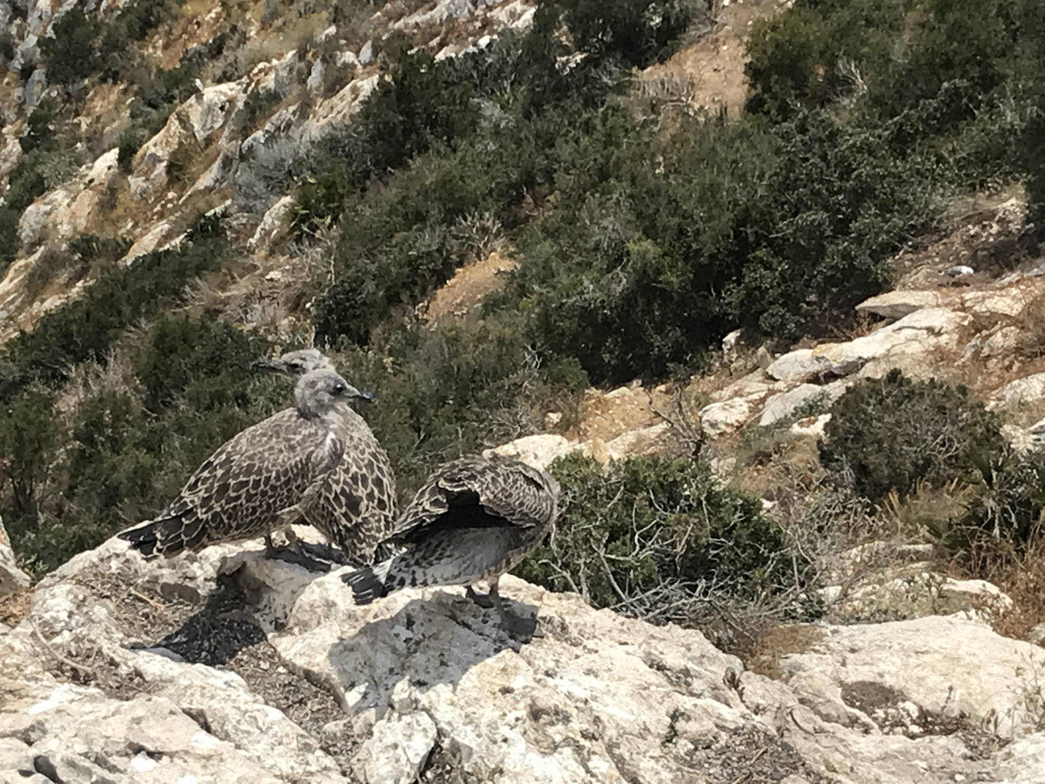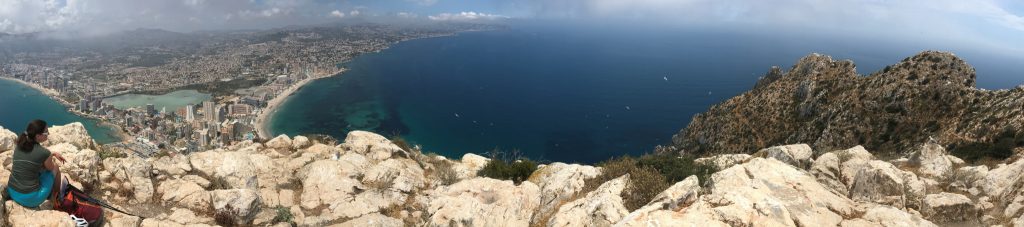 Die Wanderung auf den Calpe war dann noch unbeschreiblich schön! (Nachdem wieder einmal Sonntags der ganze Parkplatz völlig überfüllt gewesen war, war nun am Montag fast nichts mehr los). Und unglaublich: die Möven mit ihren Küken auf dieser Seite waren vollkommen entspannt! Die sind nicht mal aufgestanden, wenn man gefilmt hat oder (aus Versehen) einen halben Meter vor ihren gut getarnten Küken gestanden ist!! Wir haben noch nie Mövenküken gesehen, die sind schon wirklich niedlich! Und die Großen gute Eltern: einer hat immer auf die Kleinen aufgepasst…