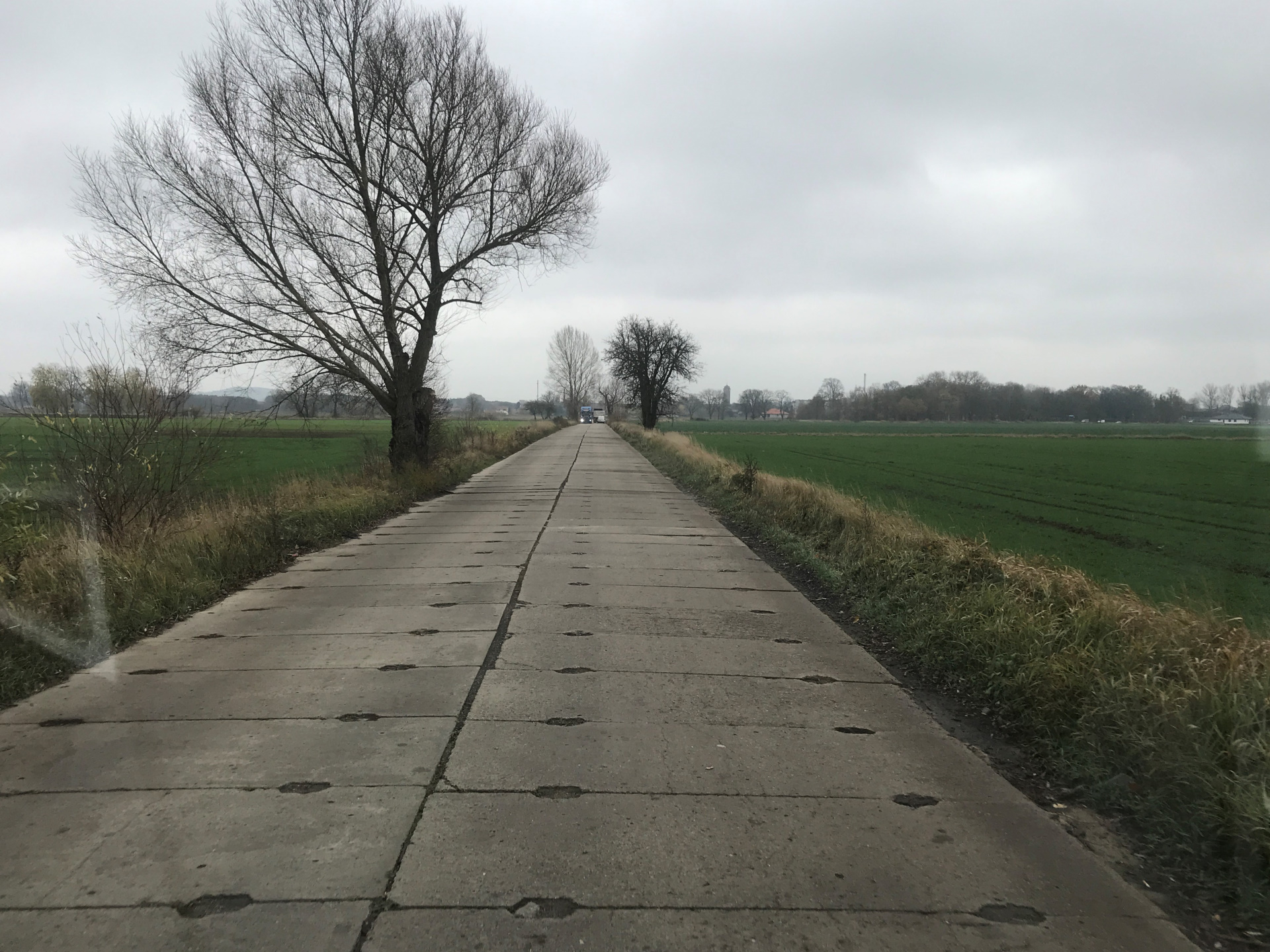 Alex war fastiniert von diesem polnischen Strassenbelag.. Zum Glück sind unsere Zähne drin geblieben! 🙂