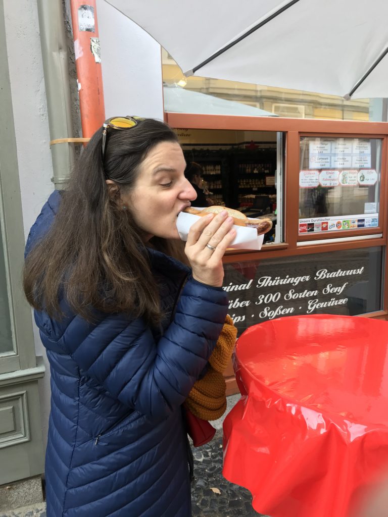 Da Görlitz mit zu den schönsten Städten Deutschlands gehört, waren wir schon sehr gespannt, was es hier zu sehen gibt. Die ganze Deutsch-Polnisch-Tschechische Grenzregion ist überhaupt eine Reise wert! Hier liegt Altes und Neues ganz nah beisammen. Görlitz ist auf der Deutschen Seite fast zu 100% renoviert. Sehr schön! Jedoch eher nur die Fassaden. Verrückterweise waren viele Häuser nur äußerlich renoviert, durch die Scheiben konnte man sehen, dass die Räume innen nicht einmal verputzt und erst recht nicht genutzt waren.. Insgesamt gab es in der Innenstadt auch sehr wenig Geschäfte und Cafés und somit unglaublich wenige Leute. Prinzipiell finde ich das ja schwer in Ordnung :D, die Stadt wirkte dadurch jedoch ein wenig geisterhaft.. Wie ein schön gemachtes Freiluft-Museum.. Ein Verkostung musste natürlich auch wieder stattfinden: diesmal gab es nix fischiges, sondern natürlich.. ..Thüringer Bratwuarscht!! 😀 Da gibt es natürlich auch wieder unterschiedliche Qualitäten (sagen die neuen Experten), die erste war gleich unerreicht die beste! 😀 Mmhhh.. 😉
