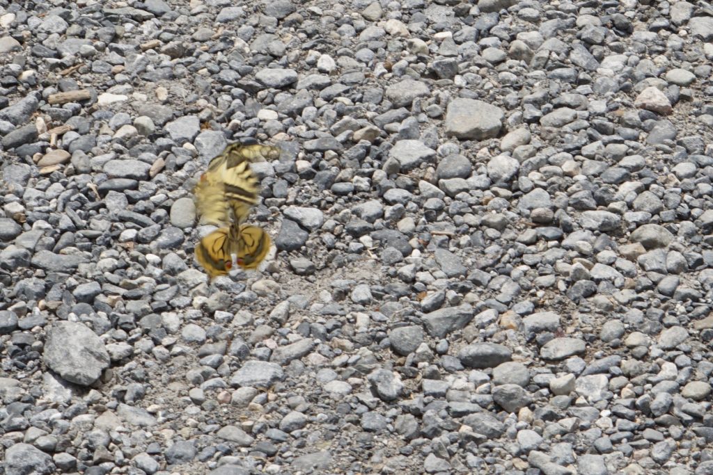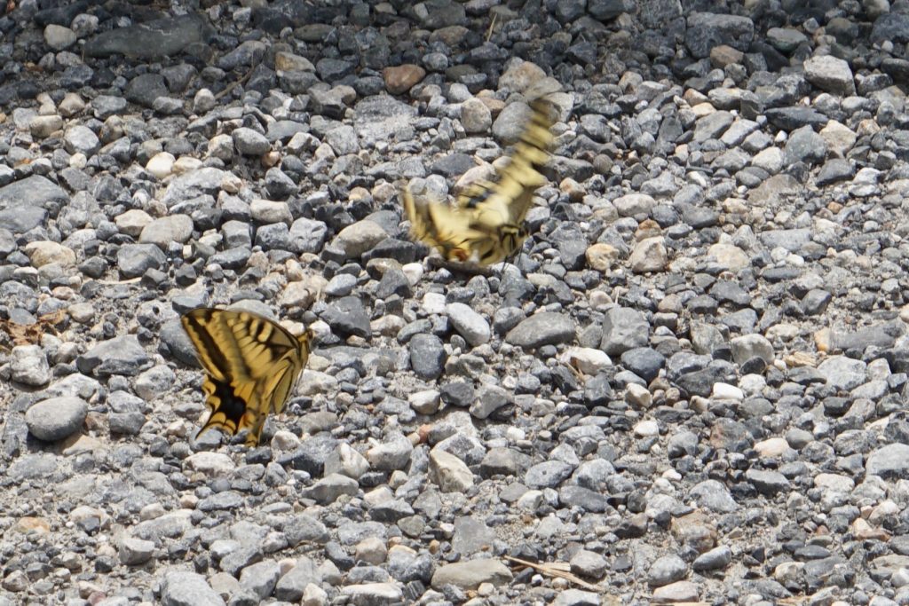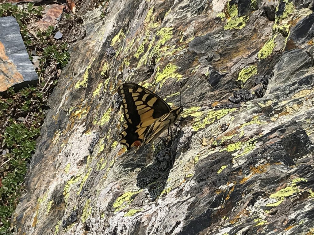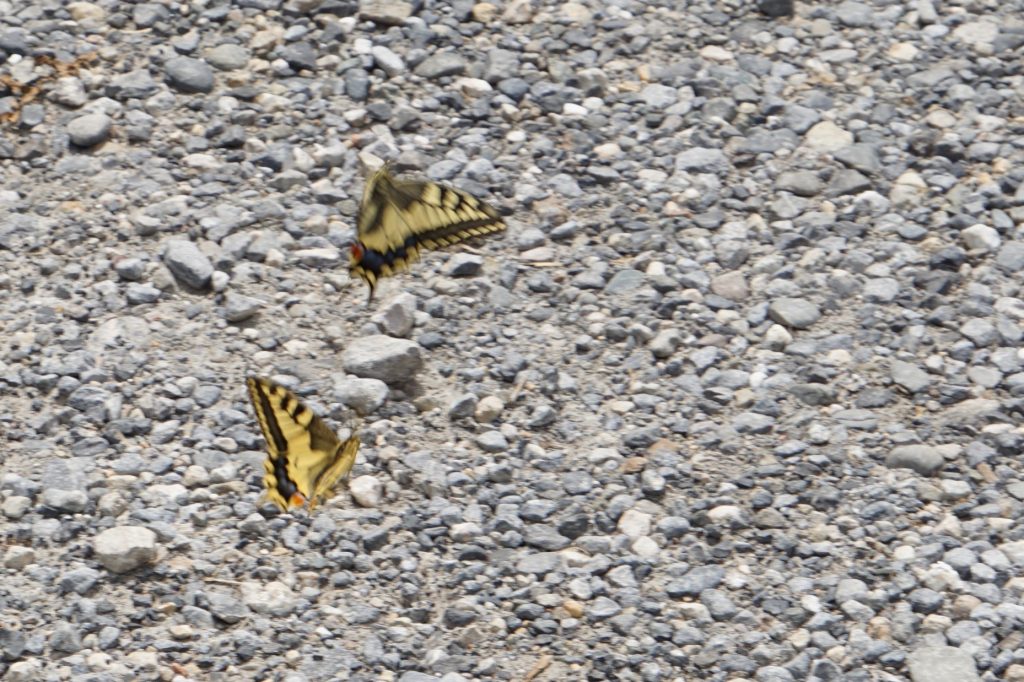 Auf dem Pic Piau und am Landeplatz unseres nächsten Fluggebiets haben wir einen sehr schönen Schwalbenschanzfalter gesehen. Da er keine „Schwänzchen“ hatte könnte es ein sehr seltener korsischer Typ gewesen sein. Ein paar Tage später hat Sandra dann noch den heimischen südliche Schwalbenschwanz (mit Schwänzchen) gefunden, belagert und mehrfach fotografiert: