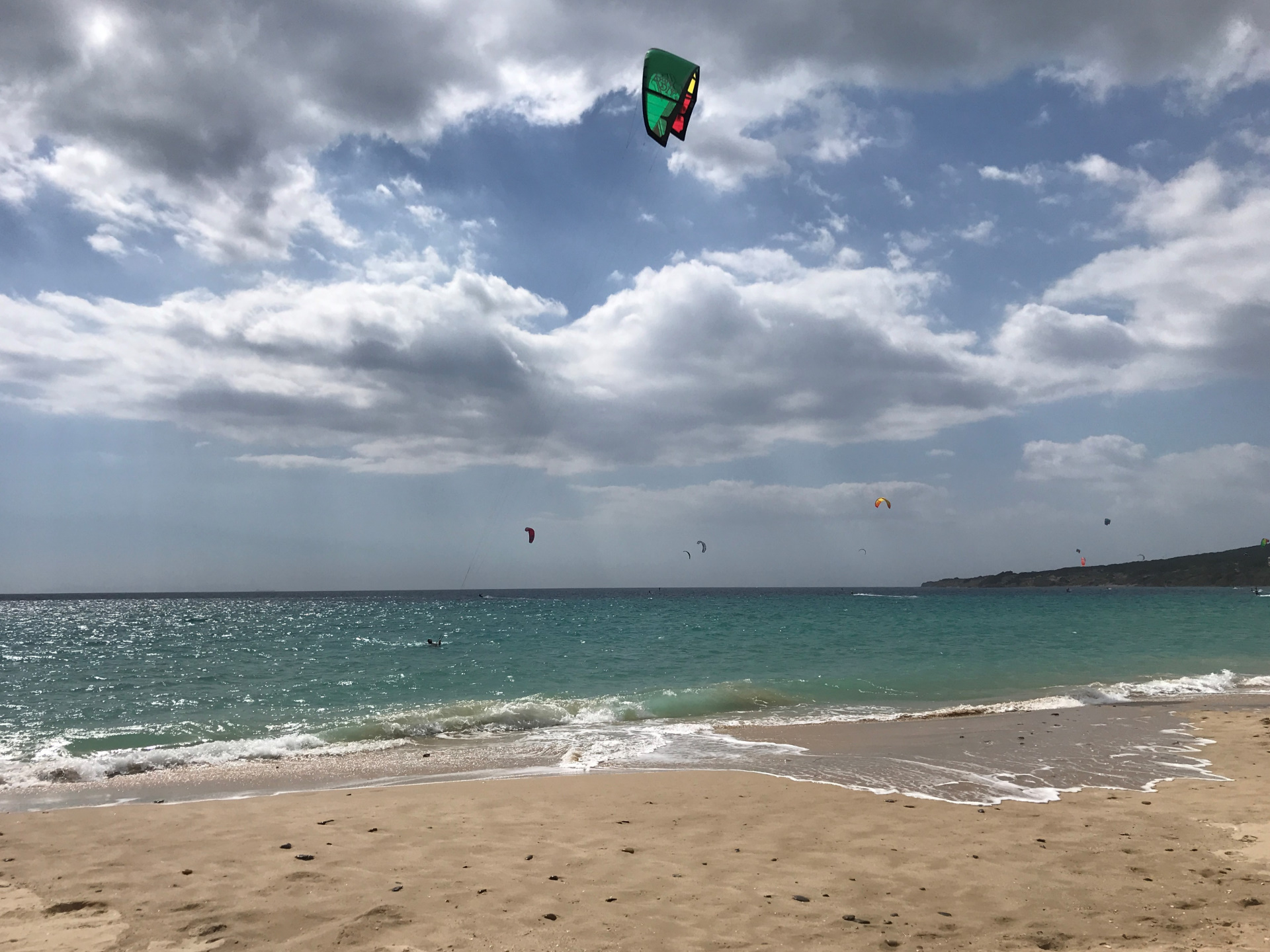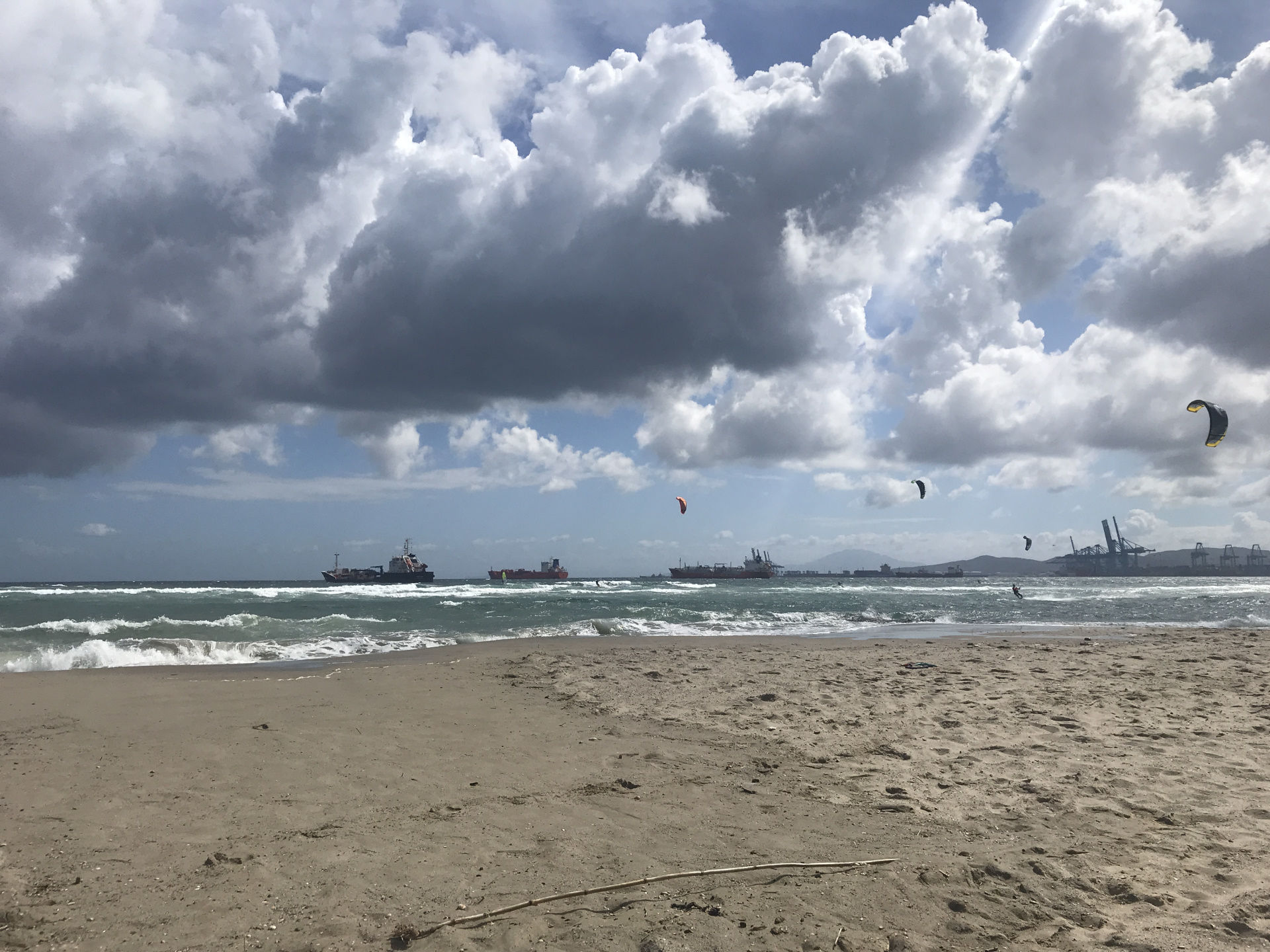 Nachdem wir ein ganzes Jahr kreuz und quer durch Europa gefahren sind, um einen guten anfängertauglichen Kitespot zu finden, sind wir am Ende doch wieder in Tarifa gelandet. Am Ersten Tag waren die Bedingungen optimal und ich konnte meine ersten Meter zurücklegen, was für eine FREUDE! Leider zeigt sich Tarifa an den nächsten Tagen von seiner krassen Seite! Der „Levante“ (Östlicher Wind aus dem Mittelmeer) zeigt seine Zähne mit bis zu 45 Knoten und auch noch schräg ablandig. Das sind 9 Beaufort und nicht mal die Profis sind aufs Wasser gegangen. Ein unglaublicher Hack, der alles sandstrahlt, was sich in seinen Weg stellt.