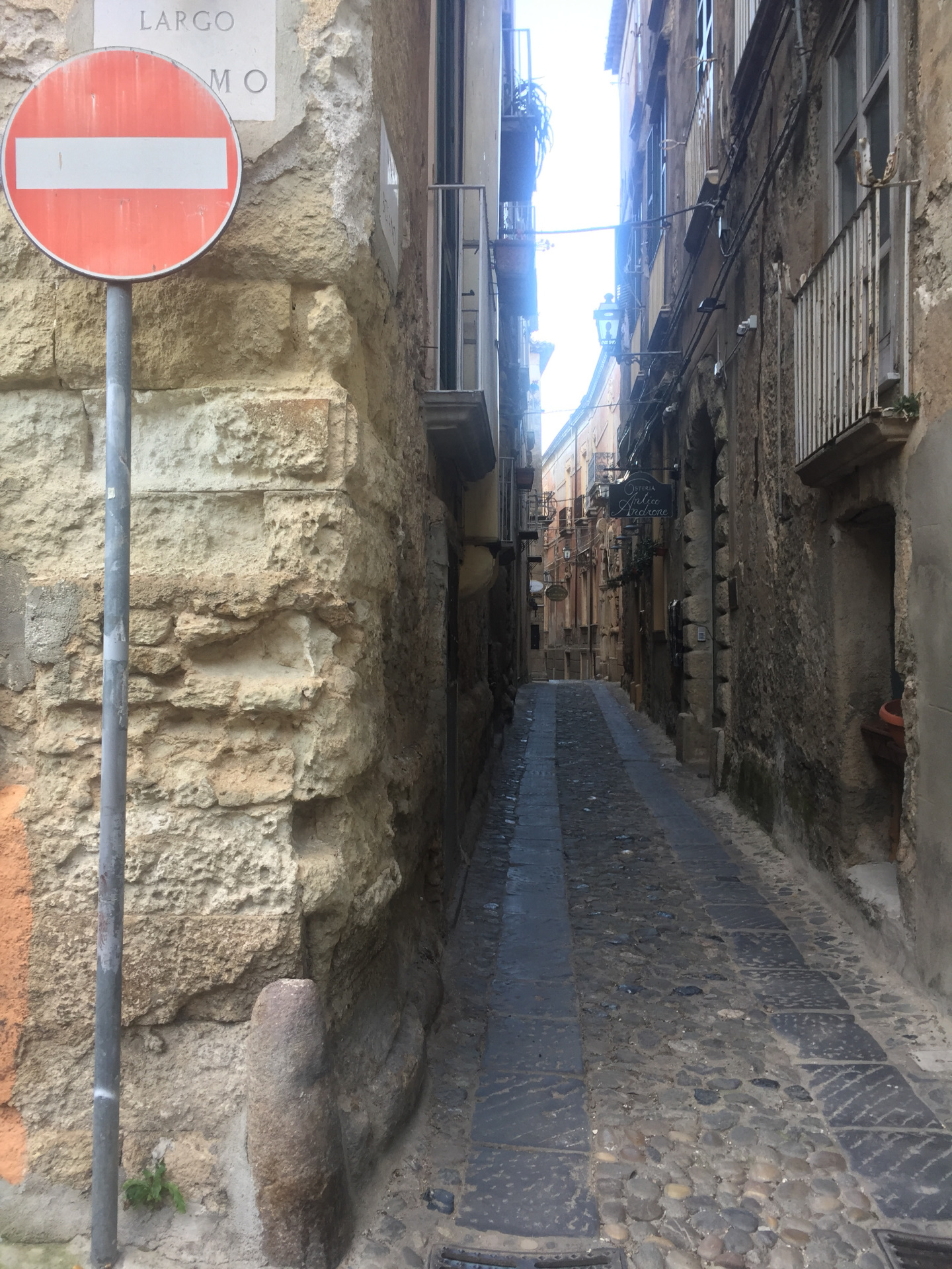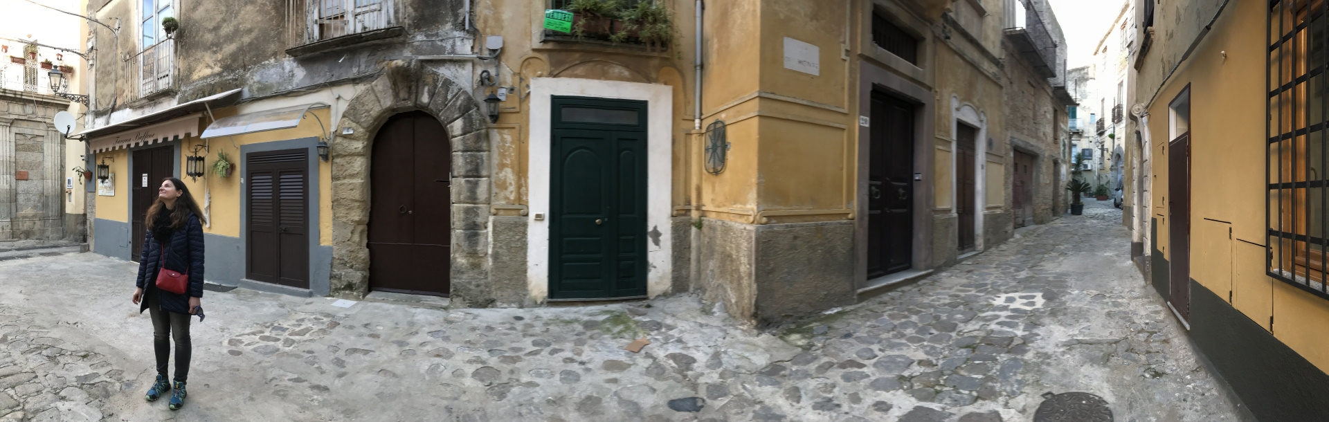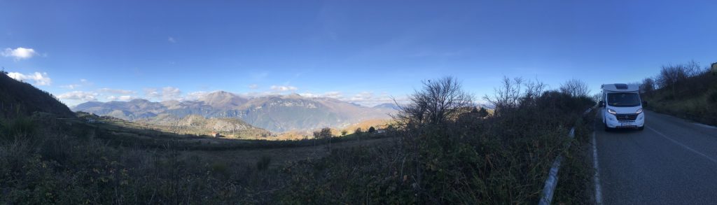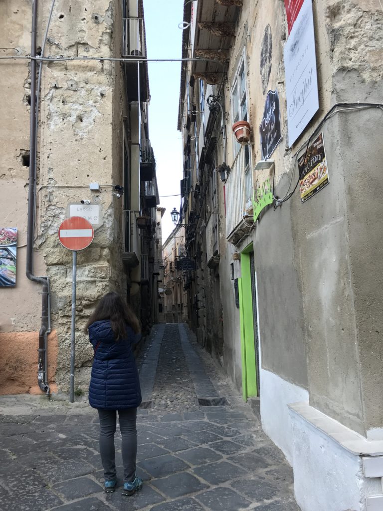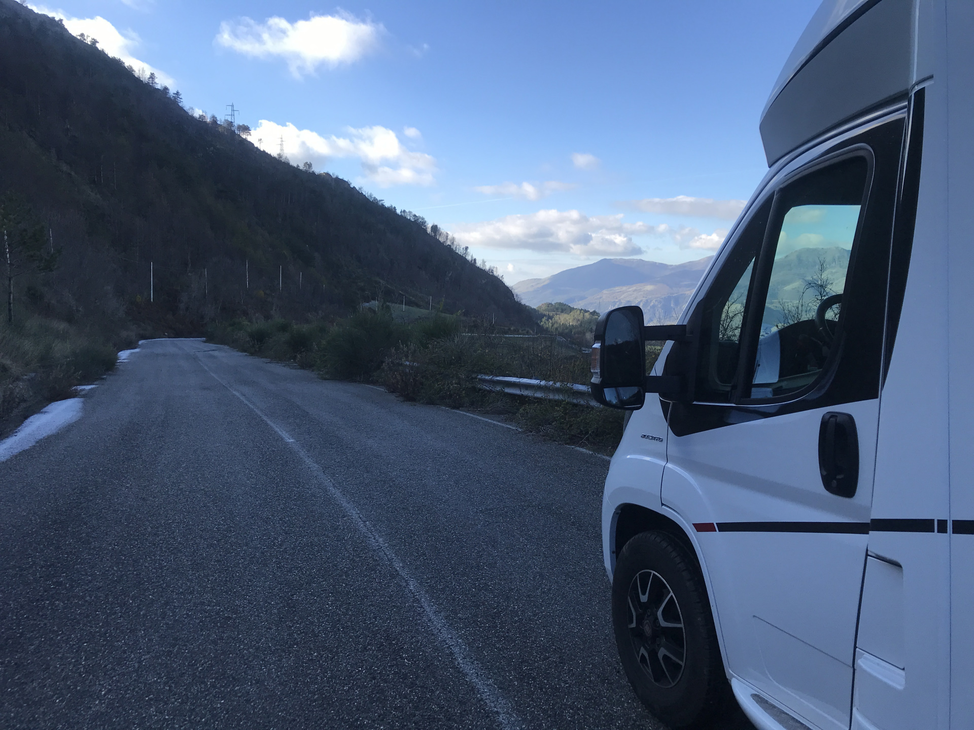 Weiter gings nach Tropea. Die Stadt liegt am kalabrischen Festland direkt gegenüber der Insel Stromboli. Die ersten Blicke auf den Stromboli waren unbeschreiblich!! Fantastisch!! Da wollte Sandra ja immer hin.. Nach ein bisserl suchen (ma scusa est un parcheggio per Camper?) haben wir einen schönen Stellplatz direkt am Meer gefunden. Moppel-Safe und dann per Pedes über eine Treppe hinauf in die Altstadt. Tropea und die ist WIRKLICH alt! Und berühmt für: Eng gebaute Häuser auf Sandstein (ok, kennen wir schon ein bisschen), alte Kirchen und… …rote Zwiebeln, die süß schmecken sollen! 😀 Wir waren schon kurz davor, eine Zwiebelsuppe kochen zu wollen ;).Wir haben auch festgestellt, dass man so schöne Bauruinen wie in Tropea nicht alle Tage zu sehen bekommt.. 😉 Sehr nett, die Stadt. Und sehr geschlossen.. Im Sommer ist hier bestimmt mehr los (man kann eben von hier auch auf die Liparischen Inseln fahren), aber im Moment ist alles dicht. Und alles sehr ruhig. Auch schön! Die Anfahrt nach Tropea war allerdings mindestens so toll: Alex ist einfach „geradeaus“ von unserem Übernachtungsplatz in den Bergen weiter gefahren, durche eine sagenhafte und sehr einsame Bergregion! Das hat uns sehr gut gefallen (wie immer, wenn es Berge gibt :D). Fantastisch! Und sogar ein wenig vereist (die hohen Gipfel hatten auch Schnee… Unglaublich, sooo weit im Süden ;)). Und ja, es war Süditalien: die Strassen (wenn man den Namen noch verwenden möchte) kurz vor der Unfahrbarkeit, lustige Märkte auf der Strasse und eine der vielen Fiat 500, die super in Schuss sind und ganz normal gefahren werden. Natürlich irgendwie gaparkt. Aber passt, dann hupt er wenigstens nicht 😀