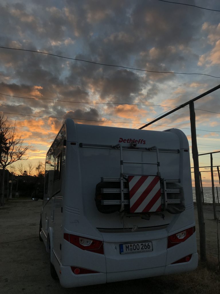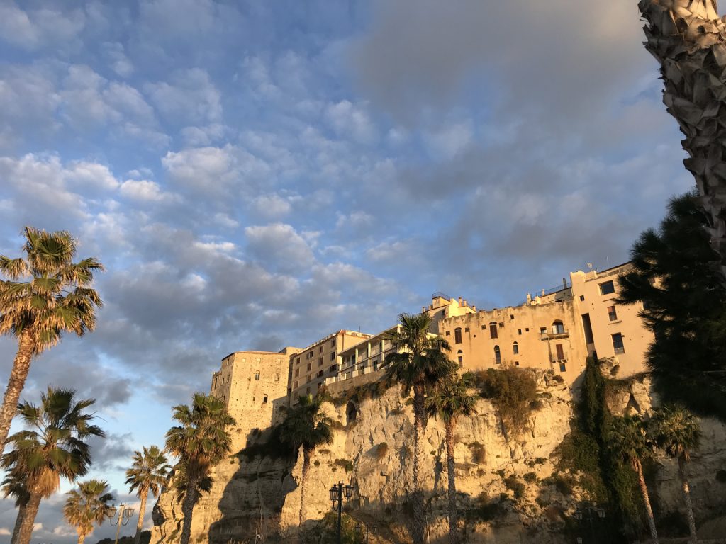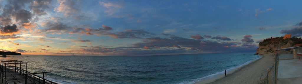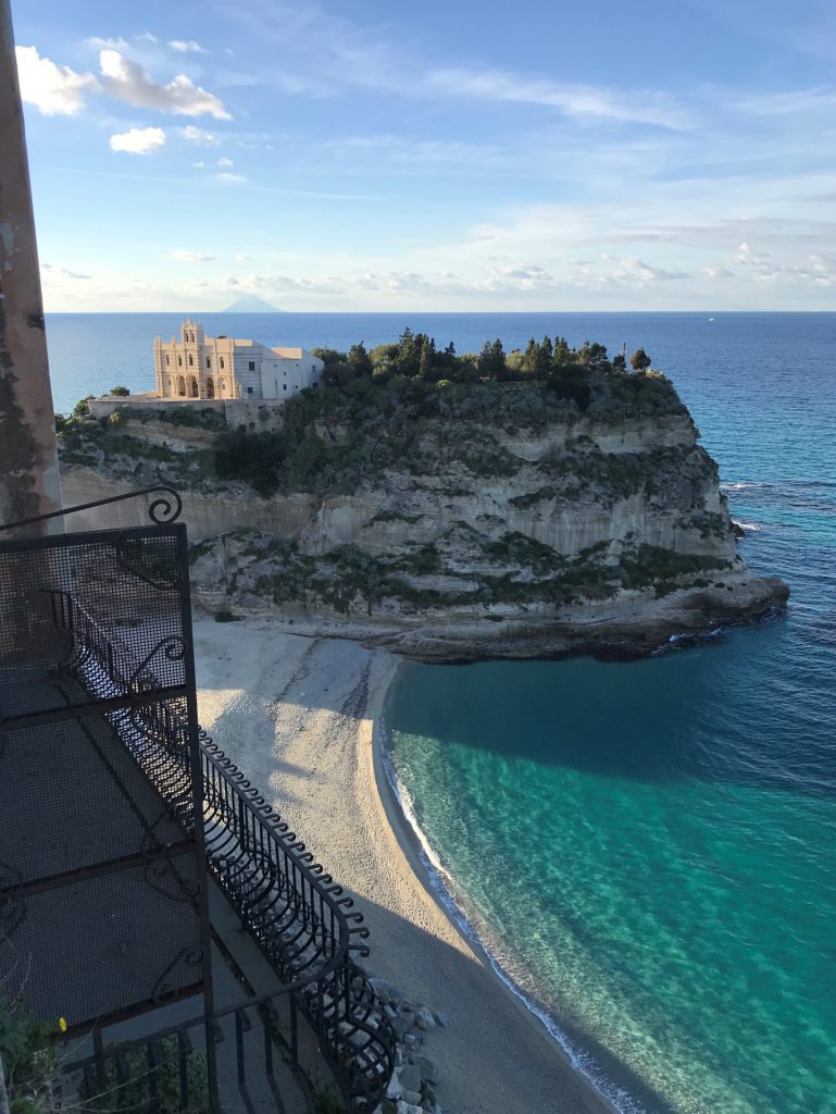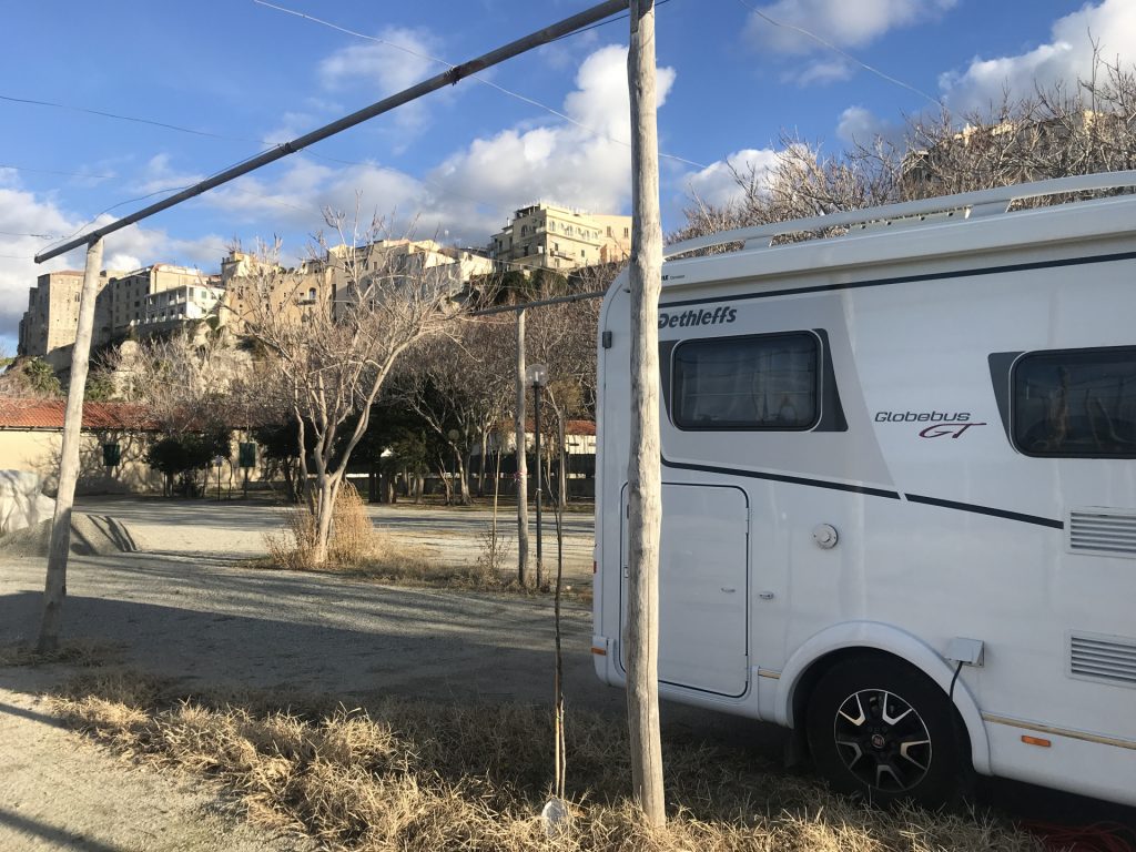 Beim Campingplatz in Tropea (direkt am Strand!!) waren wir uns (wieder) einmal nicht sicher, ob er geöffnet war.. Ok, das Tor war offen, aber innen… Alles am zusammen fallen (und ins Meer abrutschen). Wir stehen dann immer ein wenig unentschlossen in unserem Camper da und beraten uns, derweil nun noch jedesmal ein netter Italiano ankam und meinte, sisi, alles offen und er ruft gleich jemand an, der dann kommt und alles erklärt (und kassiert, die Campingplätze sind trotzdem ziemlich teuer hier 😉 Aber das passt schon, wir finden super, dass immerhin welche offen haben und wir toll, sicher und ruhig stehen können (inkl. Wasser Ver- und Entsorgung, was will man denn auch mehr???? :))))))