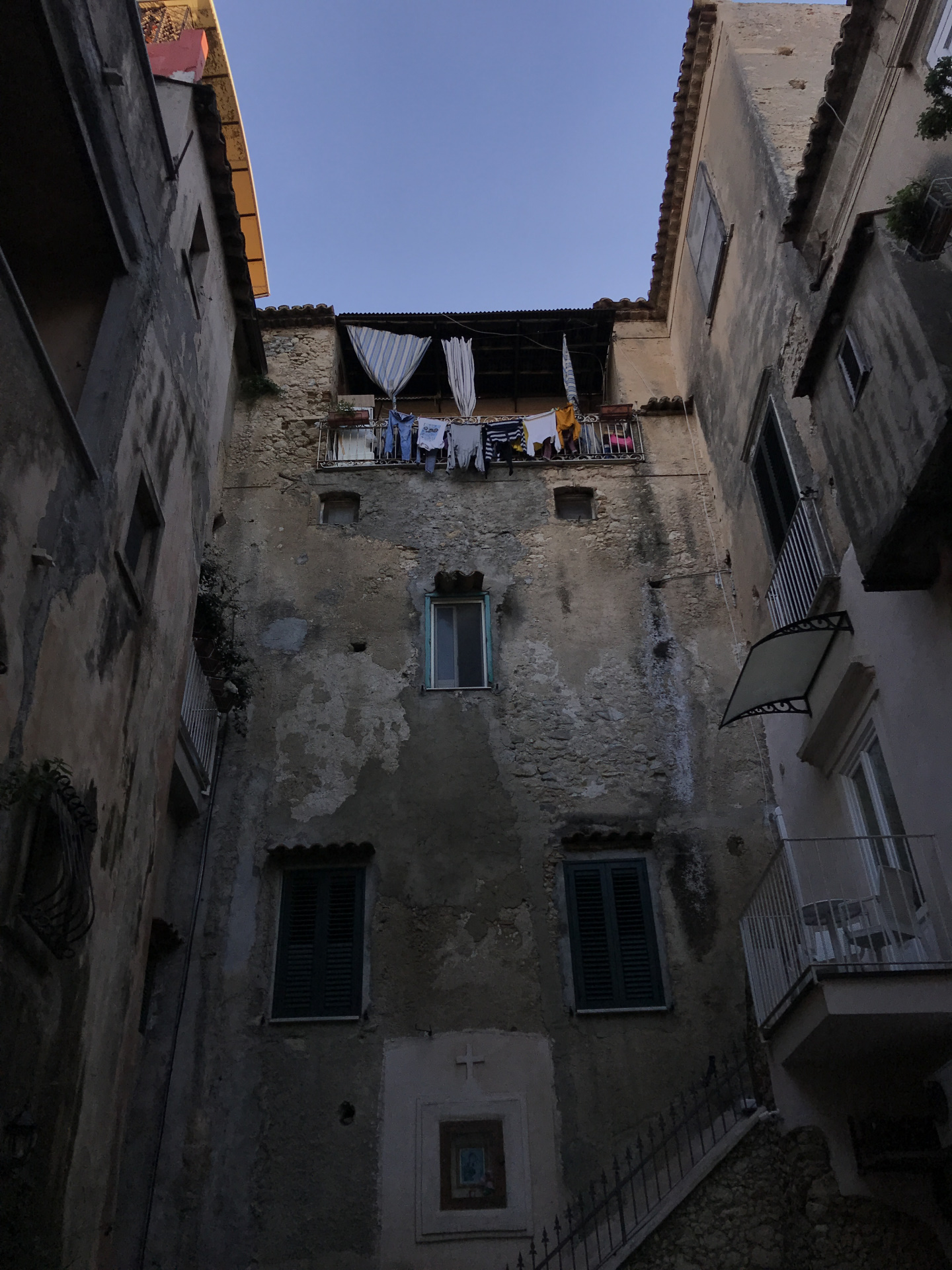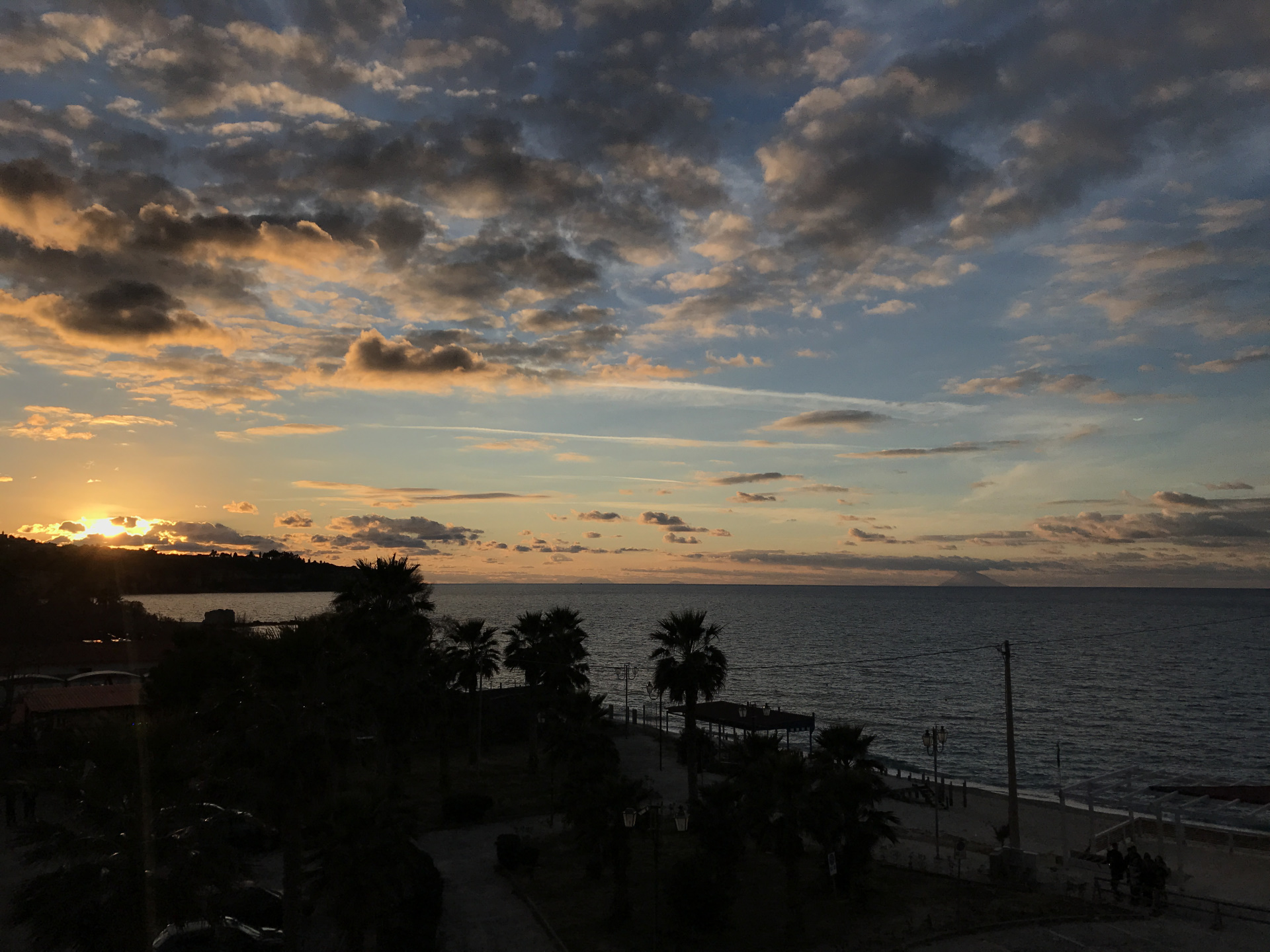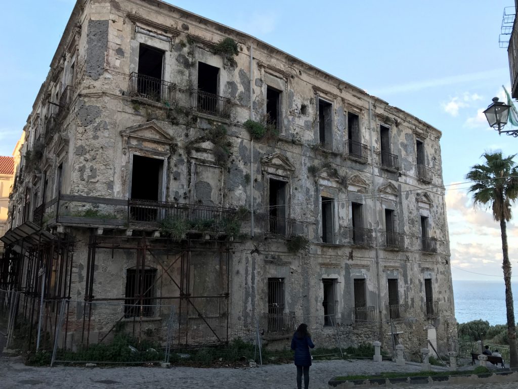 Beim Campingplatz in Tropea (direkt am Strand!!) waren wir uns (wieder) einmal nicht sicher, ob er geöffnet war.. Ok, das Tor war offen, aber innen… Alles am zusammen fallen (und ins Meer abrutschen). Wir stehen dann immer ein wenig unentschlossen in unserem Camper da und beraten uns, derweil nun noch jedesmal ein netter Italiano ankam und meinte, sisi, alles offen und er ruft gleich jemand an, der dann kommt und alles erklärt (und kassiert, die Campingplätze sind trotzdem ziemlich teuer hier 😉 Aber das passt schon, wir finden super, dass immerhin welche offen haben und wir toll, sicher und ruhig stehen können (inkl. Wasser Ver- und Entsorgung, was will man denn auch mehr???? :))))))