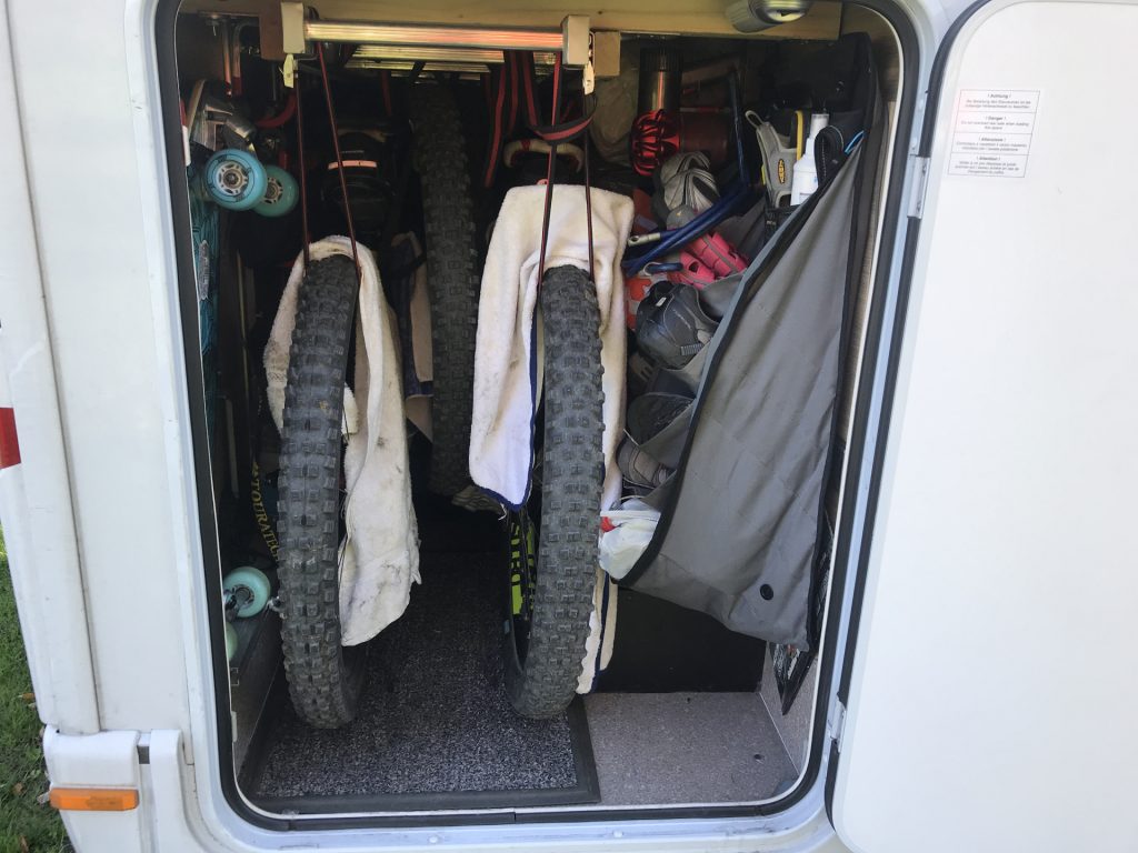 - Riesiger Kofferraum (aufgrund des Querbetts) mit Platz für unser gesamtes Equipment (2 e-Mountainbikes, Gumotex Kajak, komplette Kletterausrüstung, einer kompletten Kiteausrüstung (2 Kites, Anzug, Trapez), 2 Tretroller und noch viel weiterem Krimskrams)