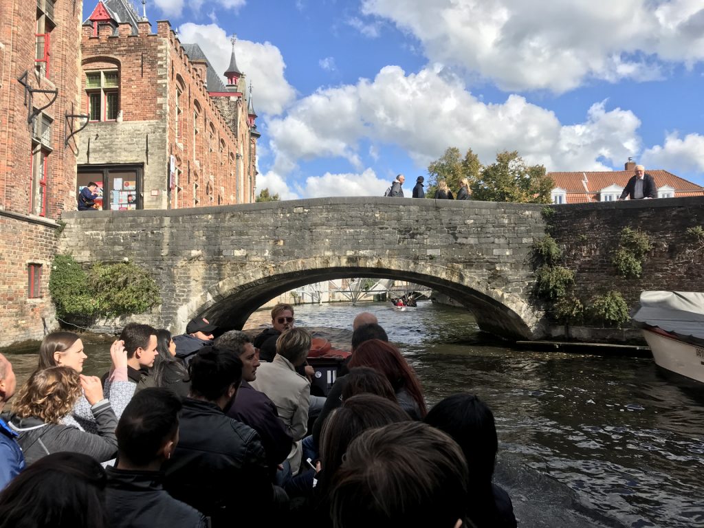 Nach der Normandie gings weiter nach Brüssel. In Belgien geht alles viel schneller als in Frankreich und zum ersten Mal seit 10tkm Kilometern gabs sogar mal wieder einen Stau :-). Brügge selbst ist sehr alt und wird (wegen der vielen Wasserkanäle) auch als Venedig Belgiens bezeichnet. Wir sind mit unseren Shootern in die Stadt gerollert und haben sogar eine Bootsrundfahrt gemacht :-). Die Boote sind sehr flach und direkt über dem (Kanal-)Wasser, da die Brücken wirklich niedrig sind.. Die niedrigste war auch die älteste. D.h., die Brücke wurde mehrmals erweitert und wurde daher stückweise niedriger (mit dem niedrigsten Teil als dem ältesten ;))