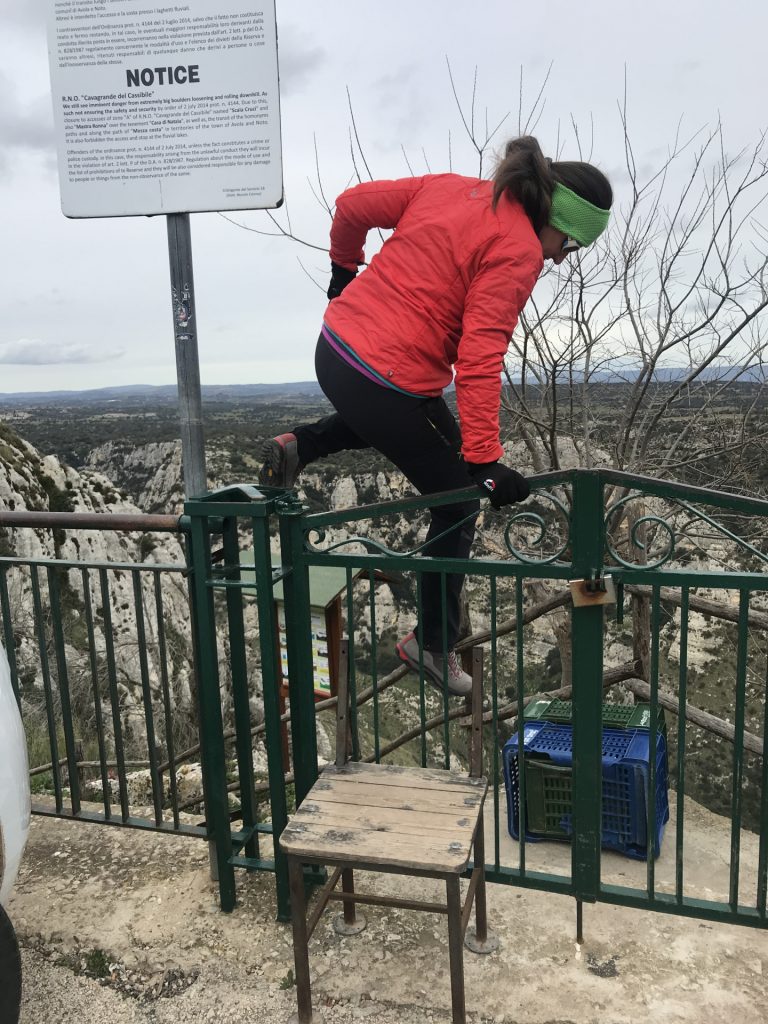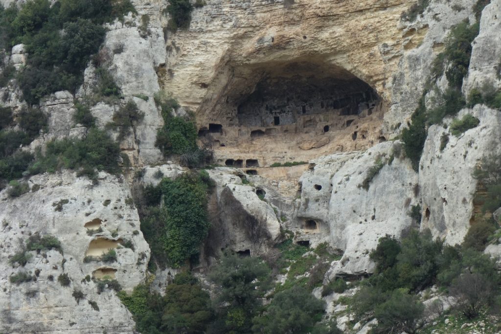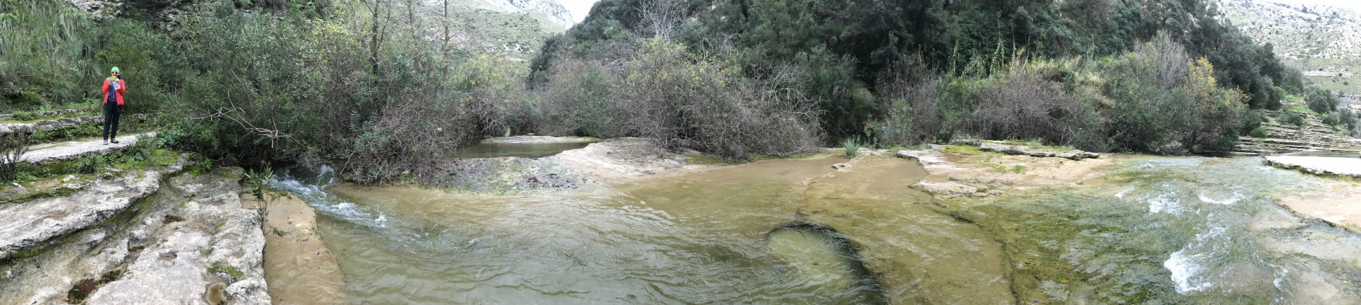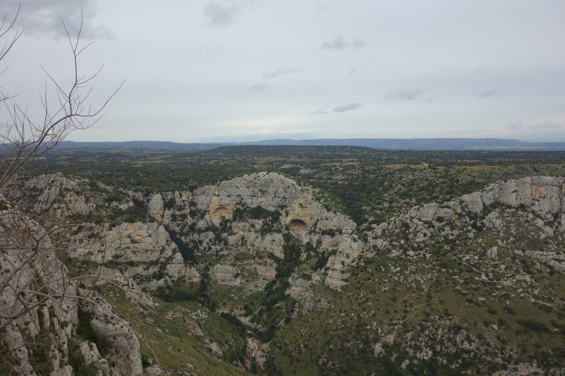 Die Cava Grande ist eine wunderschöne Schlucht im Hinterland von Syrakus. Sie war schon in der neolithischen Zeit bewohnt und mit Felsengräbern (Höhlen) ausgestattet. Sie ist eine der schönsten Wanderungen Siziliens und im Sommer entsprechend häufig besucht. Wie so oft um diese Jahreszeit waren wir aber wieder mal ganz alleine. Die erste Hürde war ein Absperrzaun, den wir überklettern mussten. Ein freundlicher Hund und sein Besitzer haben uns aber auch noch freudig ermutigt :D. Außerdem gab es eine offizielle inoffizielle Italienische Lösung: zum überklettern des abgesperrten Tors war extra ein Stuhl aufgestellt, damit es bequemer geht! 😀 Der Weg hinunter ist seit einigen Jahren offiziell wegen Steinschlaggefahr gesperrt… Wie so oft ist die einfache Reaktion hier, gleich das ganze Ding zu sperren, statt am Weg zu arbeiten. Hier jedoch nicht, man hätte einfach auf einem Weg auf der anderen Schluchtseite(!!) gehen sollen. Unklar (wie so oft) war aber, ob dieser auch ganz hinunter geführt hätte. Der gesperrte Weg war auf jeden Fall toll. Schon von oben hat man die Stromschnellen und die Becken (in denen im Sommer wohl auch gebadet wird) gesehen. Auf dem Weg haben wir ein wunderschönes Pflänzchen, einen so genannten Krummstab, entdeckt. Das Tolle an der Wanderung ist, dass man zuerst in die Cava Grande absteigt (ähnlich wie im Grand Canyon), um danach vierhundert Höhenmeter wieder aufzusteigen. Eine superschöne und sehr lohnenswerte Wanderung!